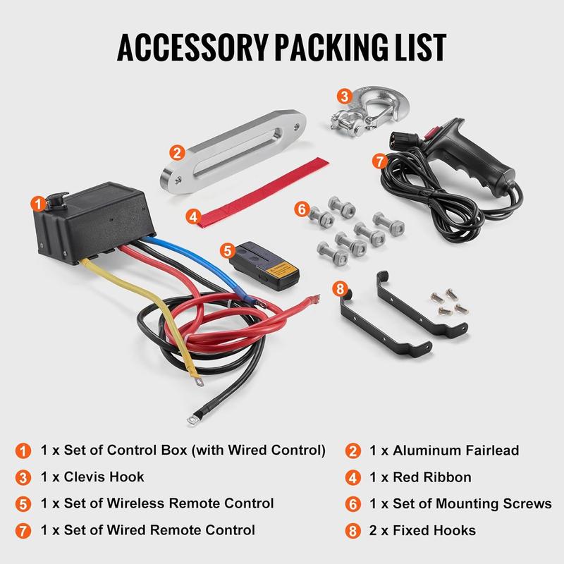 Our 12 volt winch features color-coded power cables for quick and error-free setup.The wireless remote controls help to operate the vehicle's self-rescue without obstacles within a 65.61 ft/20 m range.We've got you covered with a wired remote as well, giving you all the control you need.